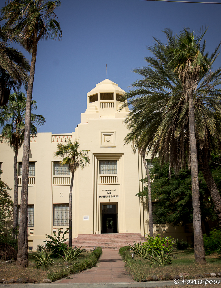 Que faire le dimanche ? En profiter pour visiter le centre-ville sans stress. Prendre le bus pour changer des taxis, assister à une messe, visiter le Musée Théodore Monod d’art africain de l’IFAN et poursuivre son chemin jusqu’au Palais présidentiel. Nous arrivons à la Cathédrale du Souvenir africain alors que la messe a déjà commencé. Nous ne pouvons rentrer ni prendre des photos. Alors, nous restons à l’extérieur à regarder et surtout à écouter cette messe chantée, joyeuse et dynamique. La cathédrale est comble et tout le monde participe. Mais la messe est longue et Sacha commence à ne plus tenir en place. Nous nous dirigeons alors vers le Musée d’art africain et arrivons juste à temps pour la visite guidée. Au rez-de-chaussée, une exposition sur les arts et traditions africaines. Des masques traditionnels, des objets usuels, des costumes et des coutumes. Des objets qui ne viennent pas uniquement du Sénégal mais de toute l’Afrique de l’Ouest. Les explications sont intéressantes même si je dois les adapter à Sacha. À l’étage, une exposition sur le sport national : la lutte. Je découvre un nouvel aspect de la culture sénégalaise. Je ne savais pas du tout que la lutte était un sport si important et populaire au Sénégal. Les lutteurs sont des stars et la lutte un sport très codifié et ritualisé. Quand nous irons en Casamance, nous nous rendrons compte que la lutte est un jeu quotidien pour les enfants. Sacha y sera même initié. Le Musée est un musée traditionnel et à la scénographie classique. Si les objets et les histoires associées peuvent capter l’attention des enfants un certain temps, ceux-ci ne resteront pas longtemps tranquilles. Le dimanche est la journée idéale pour visiter la ville à pieds. Nous nous rendons jusqu’au palais présidentiel et enfin retournons devant le marché Sandaga où se trouve notre arrêt de bus. Dans le bus, un vieux monsieur nous invite à s’asseoir à côté de lui et nous raconte un peu de son histoire. Nous passons un beau moment de partage.