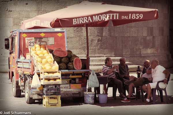 Souhaitant profiter pleinement de nos pass InterRail et aimant prendre les trains locaux pour découvrir une région, nous embarquons pour un aller-retour Siracusa-Pozzallo avec escale à Noto, considérée comme la capitale du baroque et également classée au patrimoine mondial. La gare est située en bas du centre historique, on est en début d’après-midi, le soleil darde et les rues sont désertes. Arrivés aux portes de la vieille ville, nous constatons que nous ne sommes pas seuls à visiter cette ville. Les nombreux touristes, en excursion, arpentent la rue principale et visitent les magnifiques églises de Noto. Leur présence attire les vendeurs ambulants des jouets Made in China de mauvaise qualité qui iront grossir les tas de déchets en plastique.