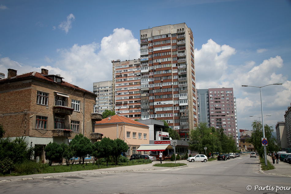 Nous sommes depuis 2 semaines déjà à Sarajevo. Joël travaille beaucoup, tous les jours, pendant que Sacha et moi arpentons la ville dans tous les sens. Nous logeons dans un quartier populaire de Novo Sarajevo, loin du centre historique et touristique. Nous y avons nos petite habitudes : la petite épicerie, la boulangerie, la ćevabdžinica, la buregdžinica au coin de la rue, la pâtisserie, nos sorties à vélo, les plaines de jeux d’une autre époque. Nous prenons le temps de visiter la ville et ses alentours. Je m’y sens bien malgré les traces de la guerre encore partout présentes et les jours de pluie fréquents. Trois semaines pour se plonger dans la ville ne permettent pas de la comprendre ni de l’appréhender. Il y a déjà la barrière de la langue, la complexité de la situation politique ici et ma grande timidité. Il y a juste ces petites choses que l’on voit et qu’on ne remarque pas lorsque l’on est seulement de passage. Joël, lui, vit une toute autre expérience puisqu’il plonge chaque jour, 12 heures par jour, dans l’intimité des gens. J’ai hâte de découvrir Sarajevo au travers de son expérience.