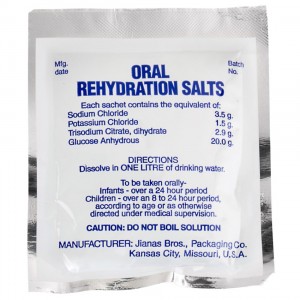 Le moyen le plus rapide et le plus efficace pour remplacer des fluides perdus est la réhydratation orale avec des Solutés de Réhydratation Orale (SRO). Elles sont largement disponibles dans les pharmacies du monde entier et se présentent sous forme de sachet de poudre à diluer dans un certain volume d’eau sûre. Les marques les plus connues de Soluté de Réhydratation Orale (SRO) sont :